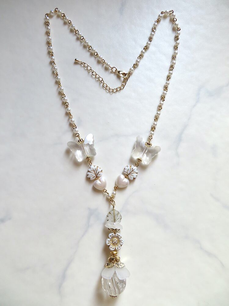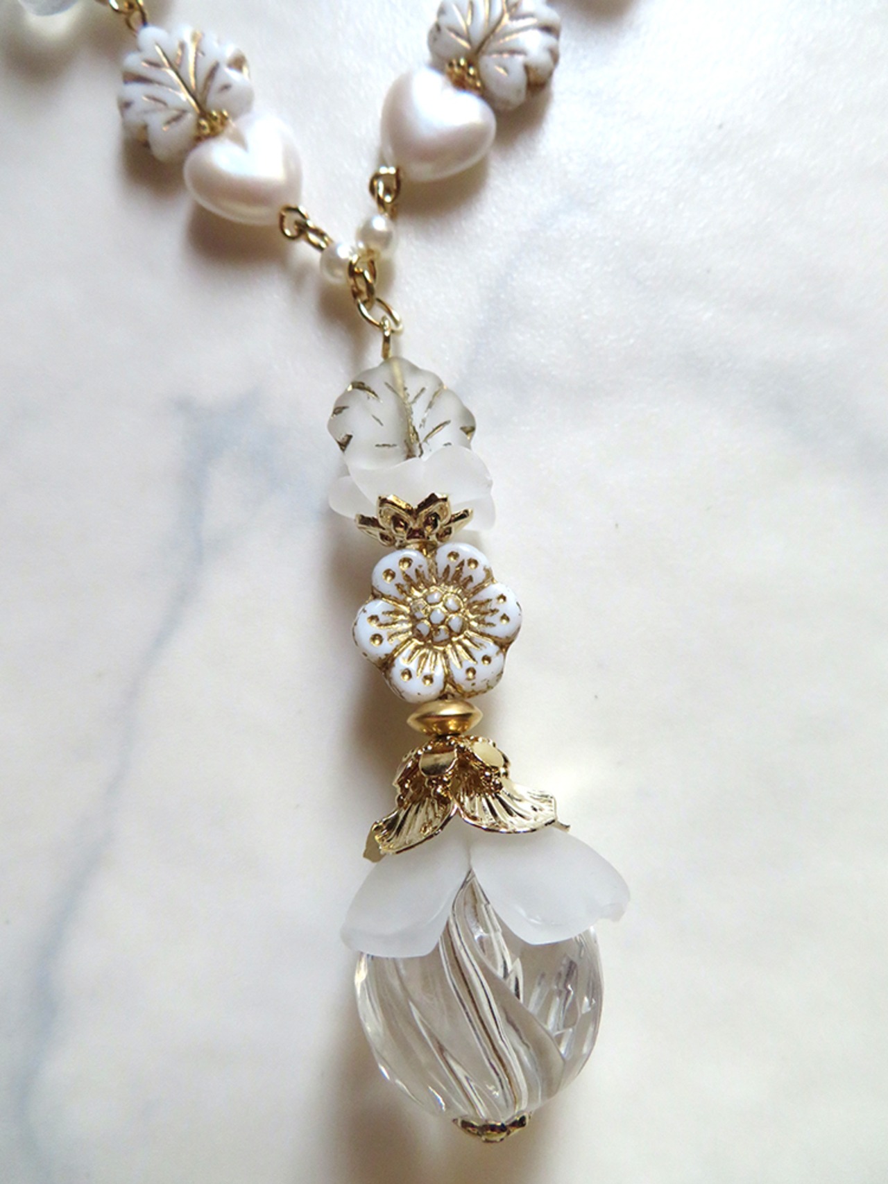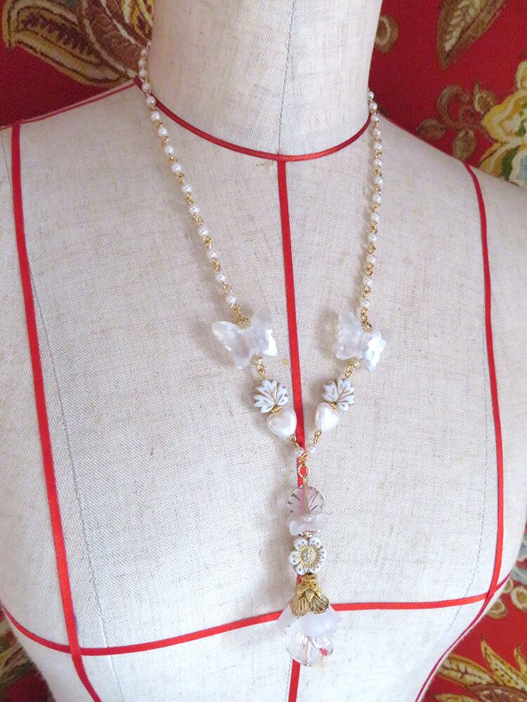 クリアやフロストが美しいドイツビーズをメインに、アクリル、プラ、チェコ硝子、ヴィンテージビーズ等をふんだんに使用し、夏の気分を薄荷水の様に爽やかに盛り上げてくれるクリアデザインを制作しました。