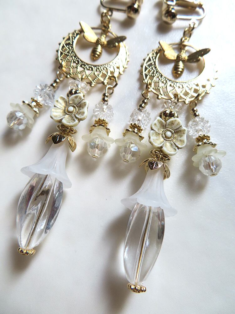 クリアやフロストが美しいドイツビーズをメインに、アクリル、プラ、チェコ硝子、ヴィンテージビーズ等をふんだんに使用し、夏の気分を薄荷水の様に爽やかに盛り上げてくれるクリアデザインを制作しました。