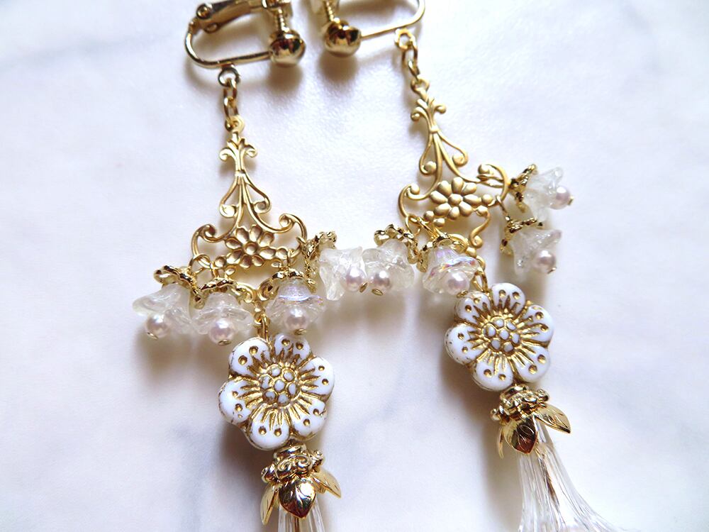 クリアやフロストが美しいドイツビーズをメインに、アクリル、プラ、チェコ硝子、ヴィンテージビーズ等をふんだんに使用し、夏の気分を薄荷水の様に爽やかに盛り上げてくれるクリアデザインを制作しました。