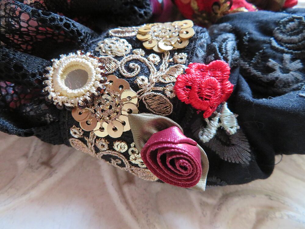 旅楽団等が乗っている移動用の幌馬車の中をイメージしたボリュームシュシュ。