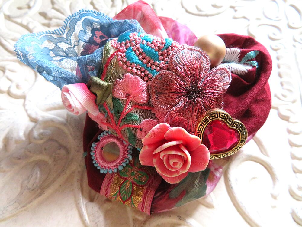 旅楽団等が乗っている移動用の幌馬車の中をイメージしたボリュームシュシュ。