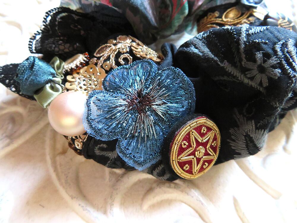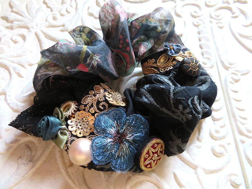 旅楽団等が乗っている移動用の幌馬車の中をイメージしたボリュームシュシュ。