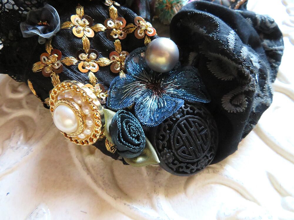 旅楽団等が乗っている移動用の幌馬車の中をイメージしたボリュームシュシュ。