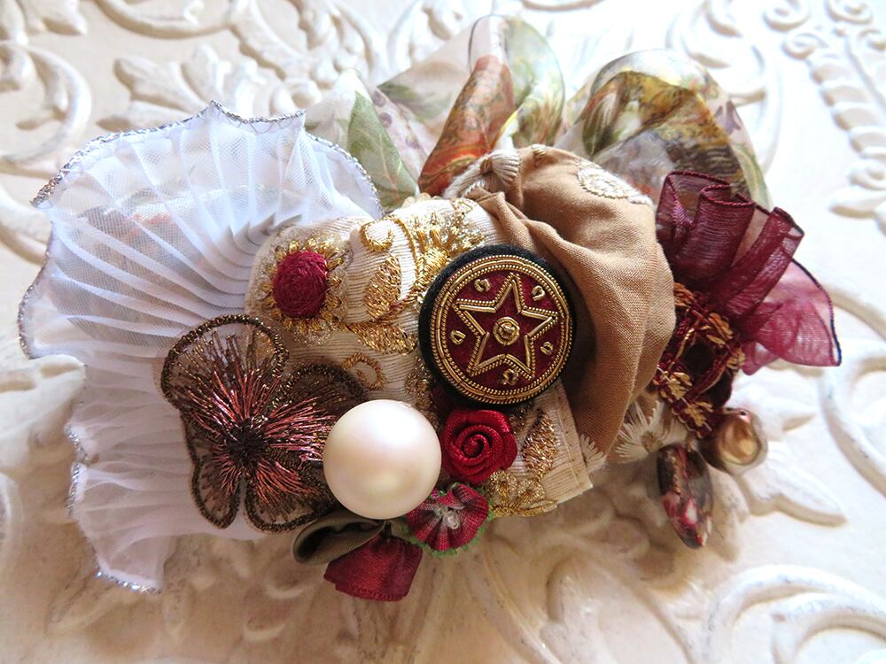 旅楽団等が乗っている移動用の幌馬車の中をイメージしたボリュームシュシュ。