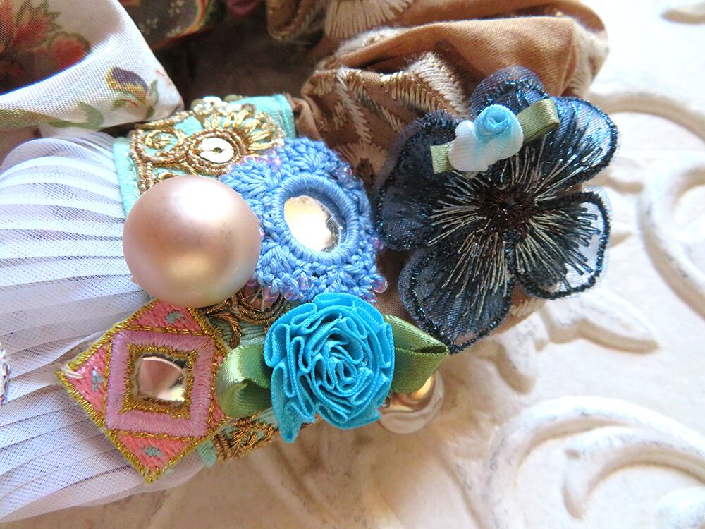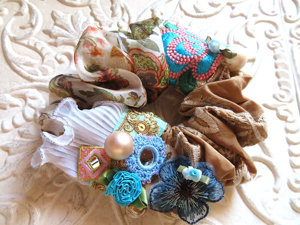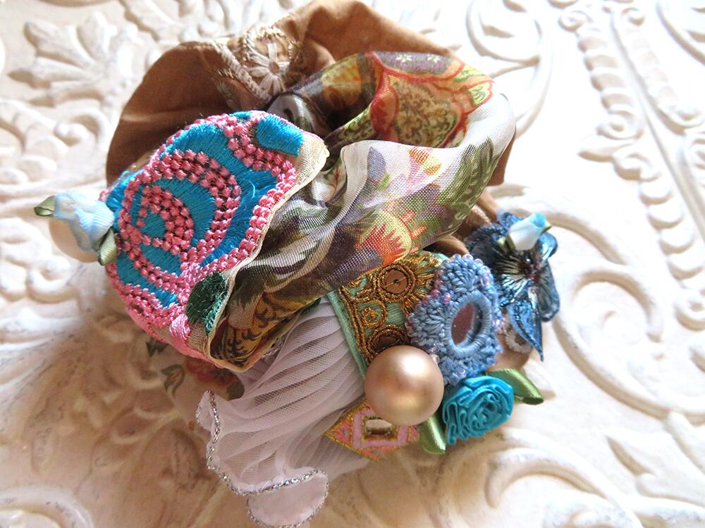 旅楽団等が乗っている移動用の幌馬車の中をイメージしたボリュームシュシュ。
