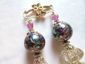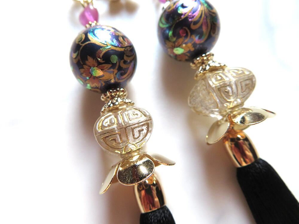 玉ビーズには螺鈿細工のような模様があり、深いブルーでとても綺麗です。