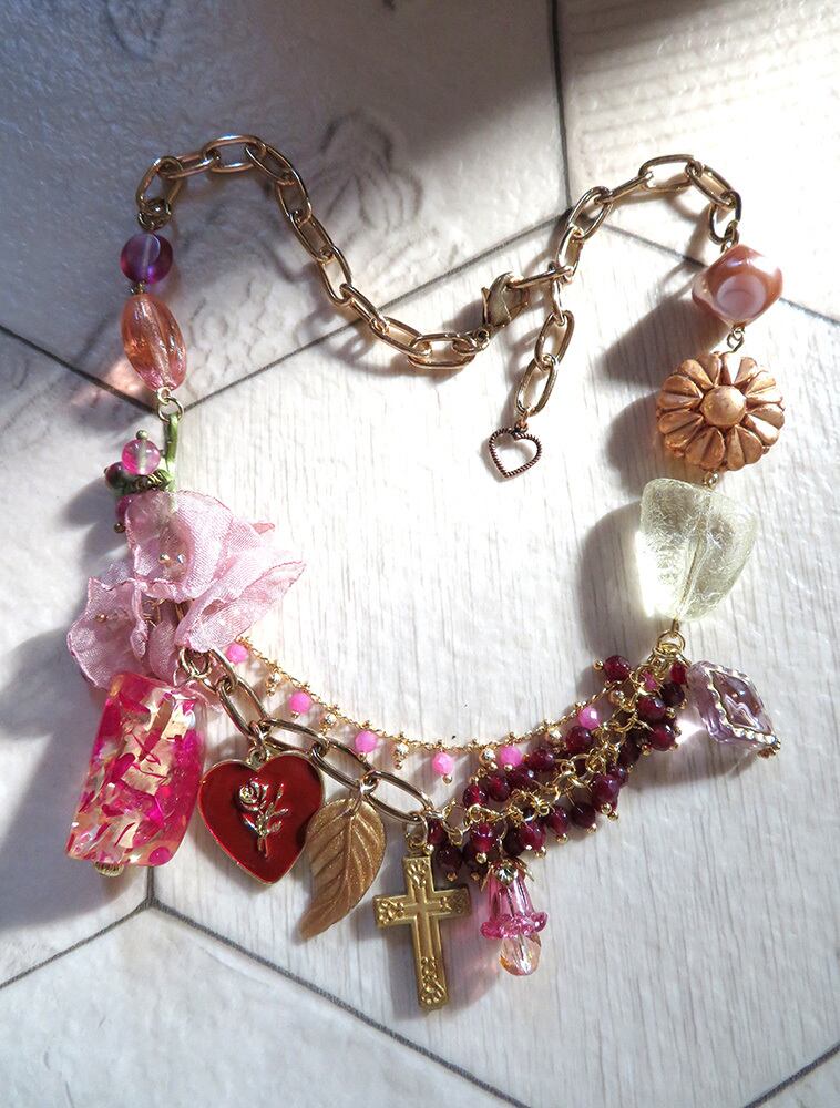 チェーンはチョコレートゴールドという、落ち着いたアンティークな雰囲気がありつつ、ゴールドのゴージャス感がしっかり印象として残る綺麗なカラーです。