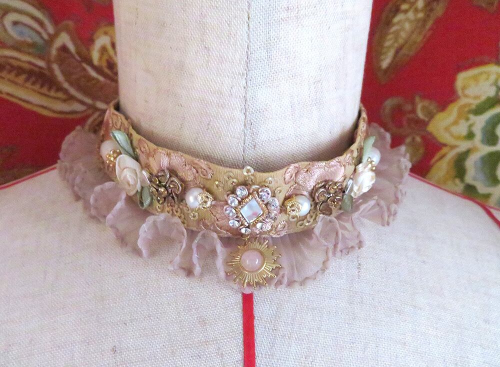 美しい刺繍リボンにビーズやリボン、モチーフを縫いとめたチョーカー。