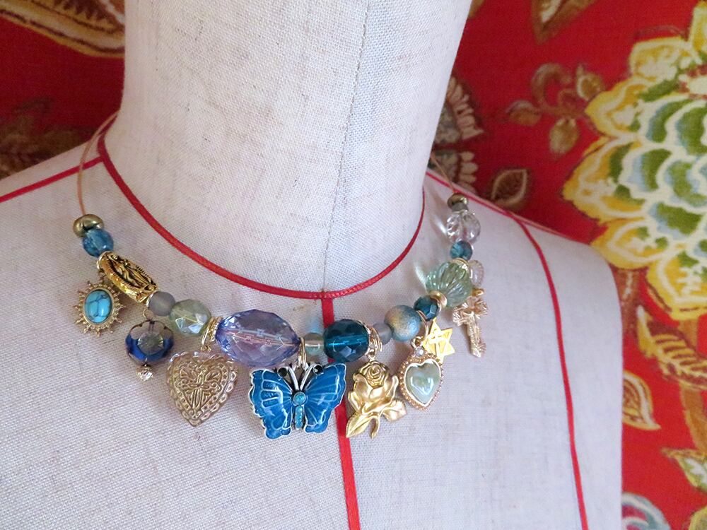 こちらのフープネックレスシリーズはおまじないをイメージしたチャーム達を、贅沢に飾りつけたデザイン。全て一点ものとなっております。