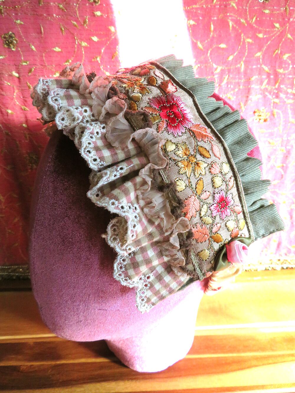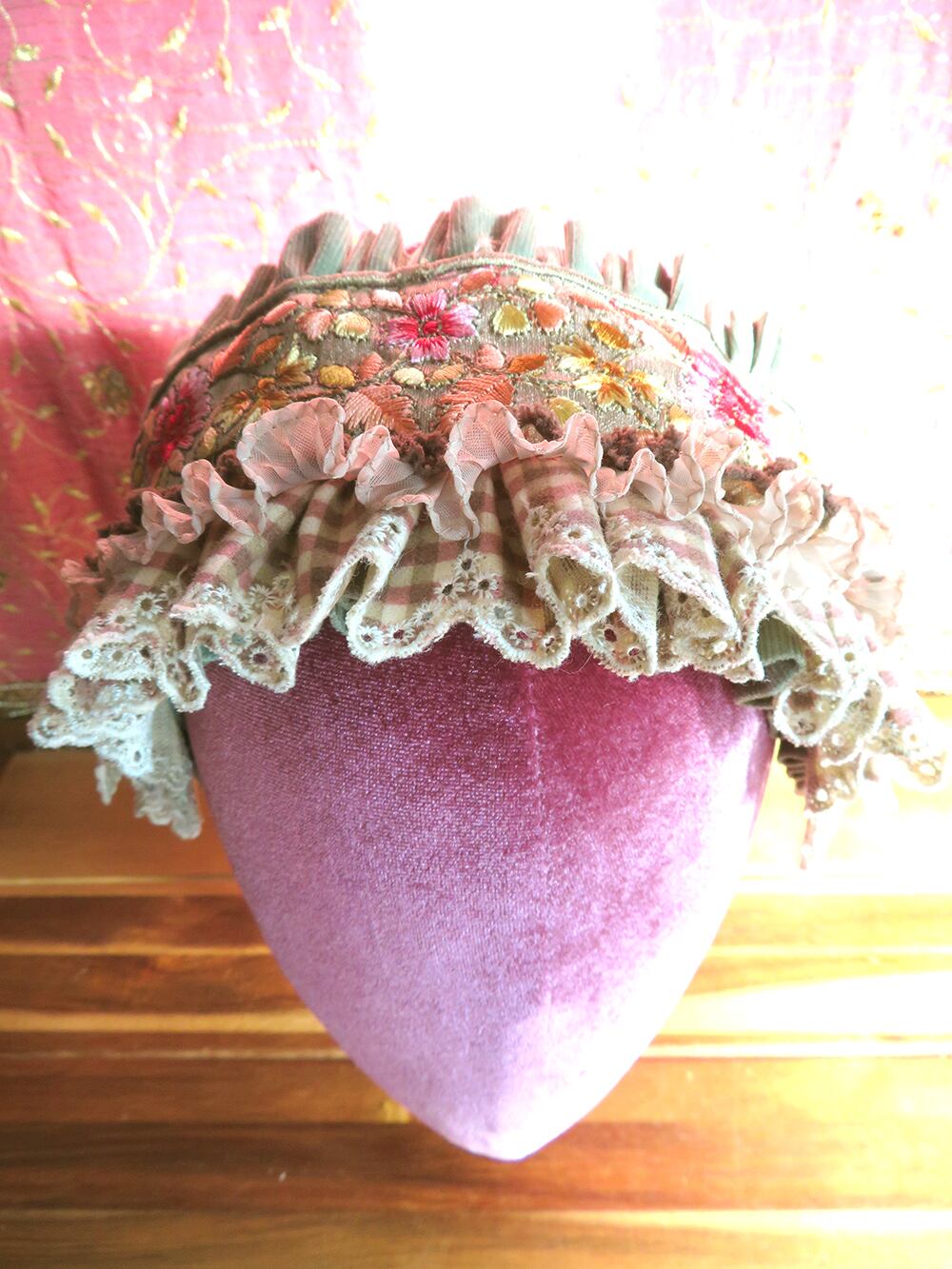 (APOLIA的に)できる限りシンプルに、幅広いファッションの方に着用して頂く為、りぼんなどの装飾はあえてつけずに刺繍りぼんとフリル、小さな巻き薔薇だけ装飾として添えています