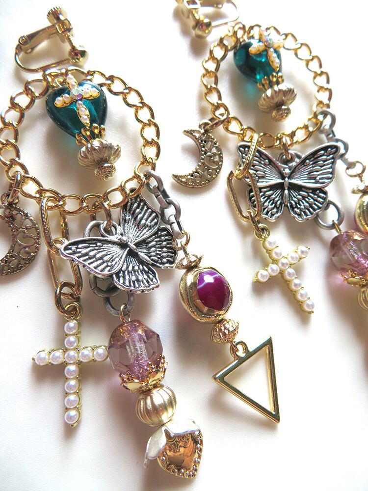 古今東西のチャームをぎっしりと付けた、お守りの様なシリーズ。