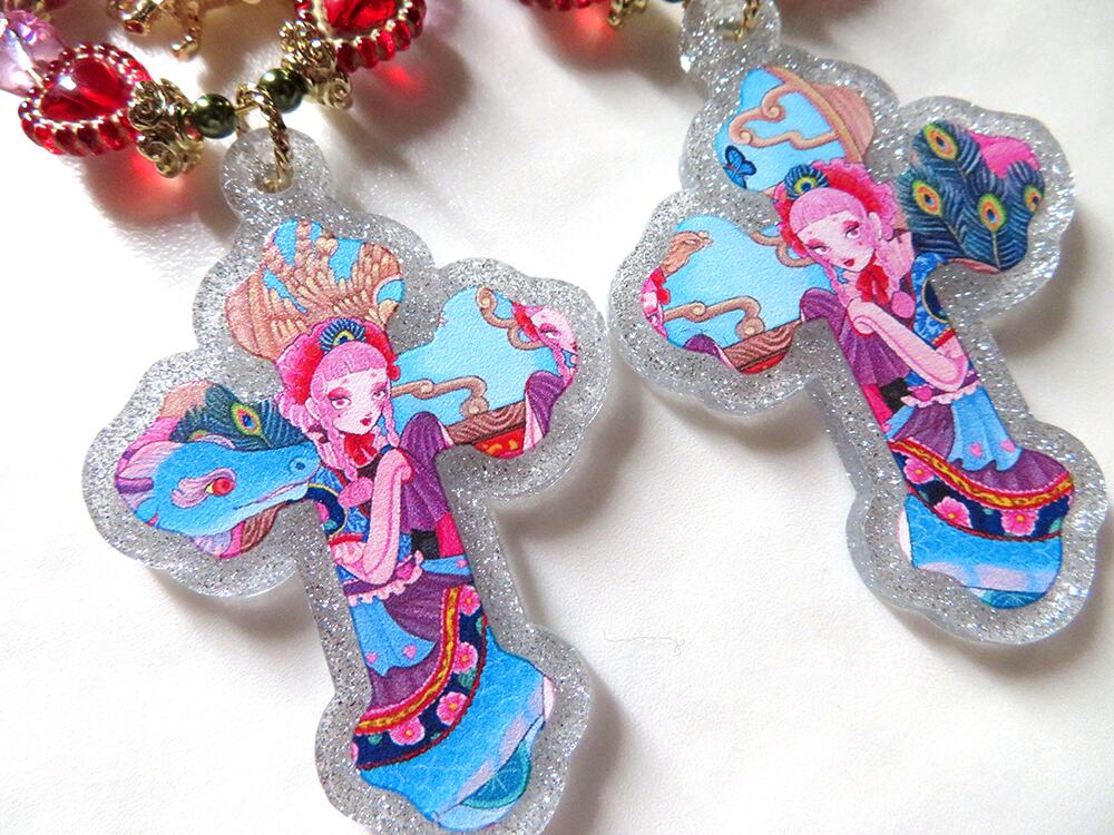 イラストレーター番地さんが描いてくださったAPOLIA10周年記念絵をアクリル印刷して、APOLIAがアクセサリーに仕立てました。