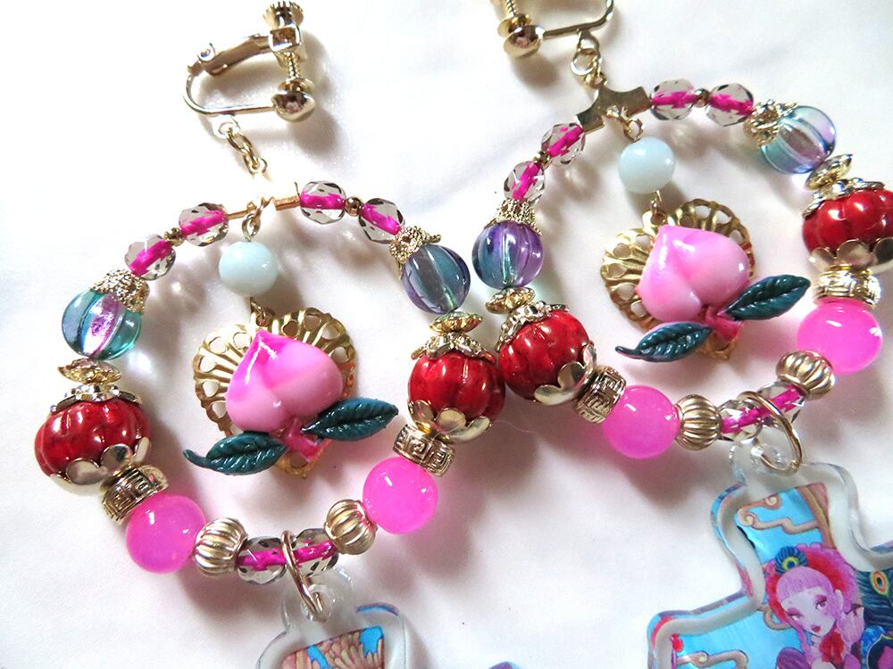 中華柄に合わせてジャパンヴィンテージの桃のカボションをあしらいました。