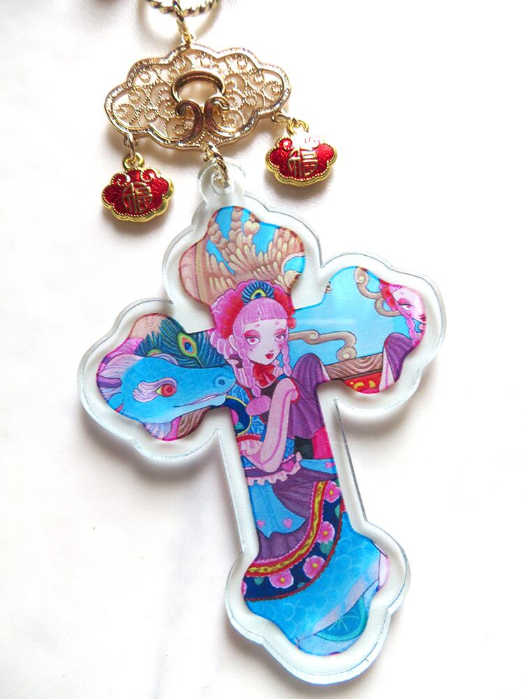 イラストレーター番地さんが描いてくださったAPOLIA10周年記念絵をアクリル印刷して、APOLIAがアクセサリーに仕立てました。