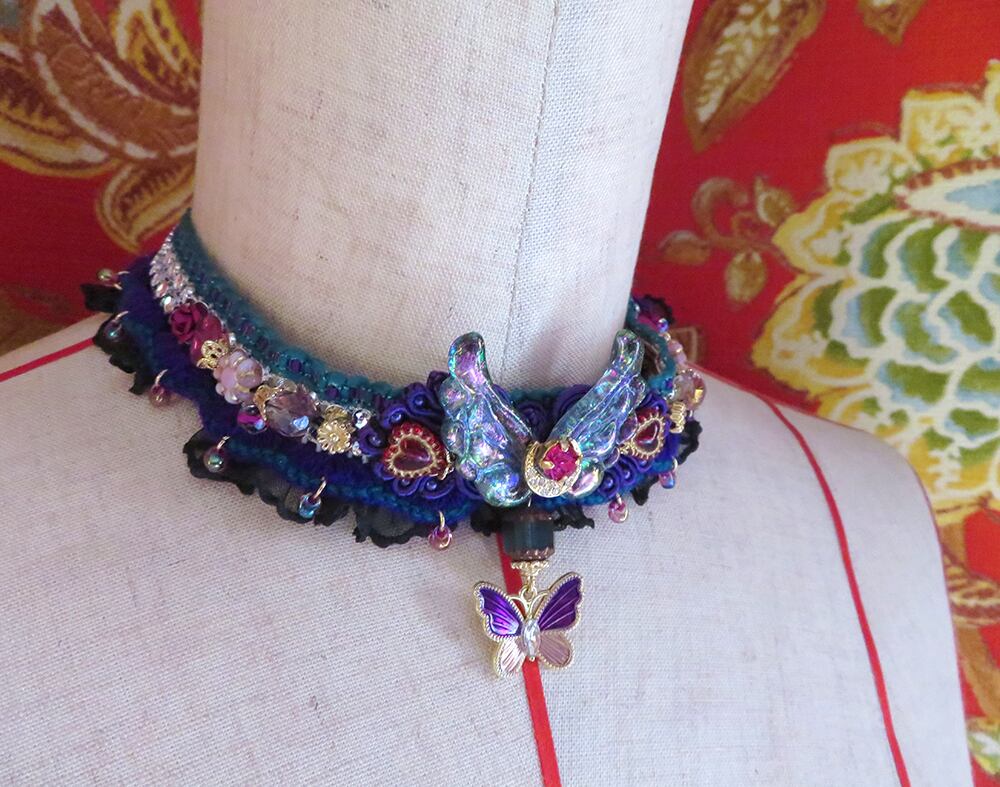 フリルやビーズなどを贅沢にデコレーションして、夢のようなチョーカーをお仕立てしました。