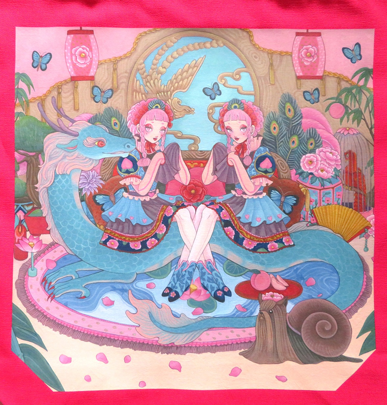 番地コラボトートバッグ&バッグチャームセット(ピンク中華)