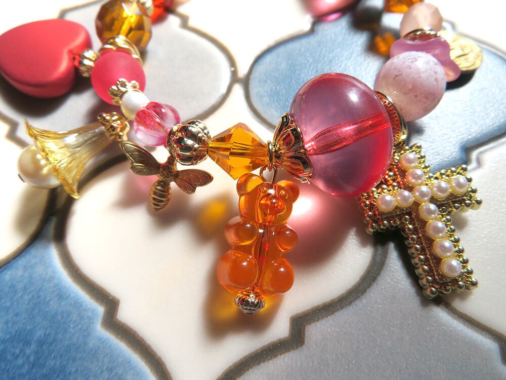 こちらのブレスレットシリーズはおまじないをイメージしたチャーム達を、贅沢に飾りつけたデザイン。全て一点ものとなっております。