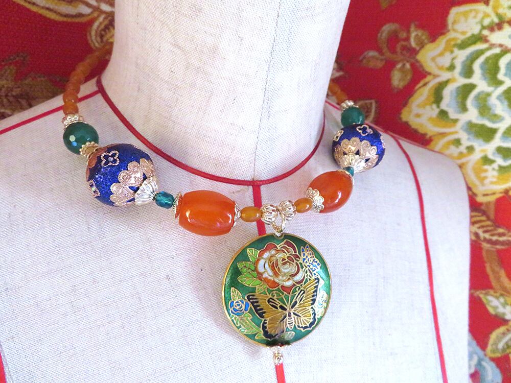 大きな蝶々の七宝ビーズは元々穴が中心からズレていますのでご了承ください。