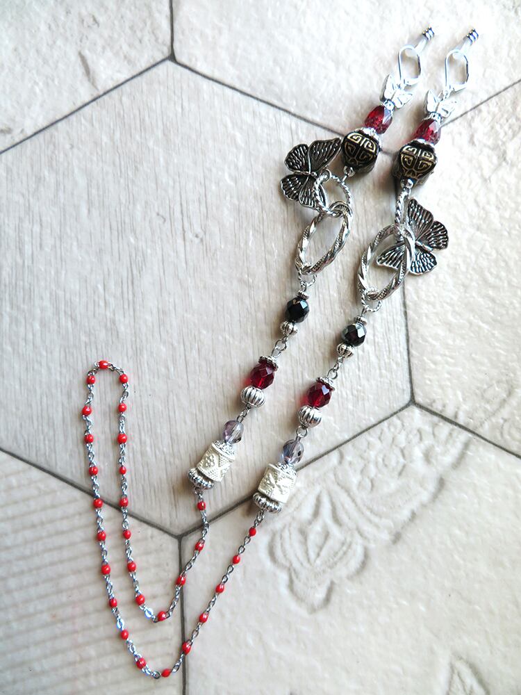 (フレンチフック真下に大きな飾りや玉ビーズが付いているデザインは、フレームに当たったり眼鏡チェーンだと重さを感じるものが多いです)