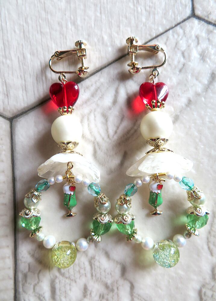 こぢんまりとしたお店でゆっくり一人で過ごしたり、友人とクリームソーダを飲んで過ごす楽しい時間とメニュー達をイメージしたアクセサリーです。