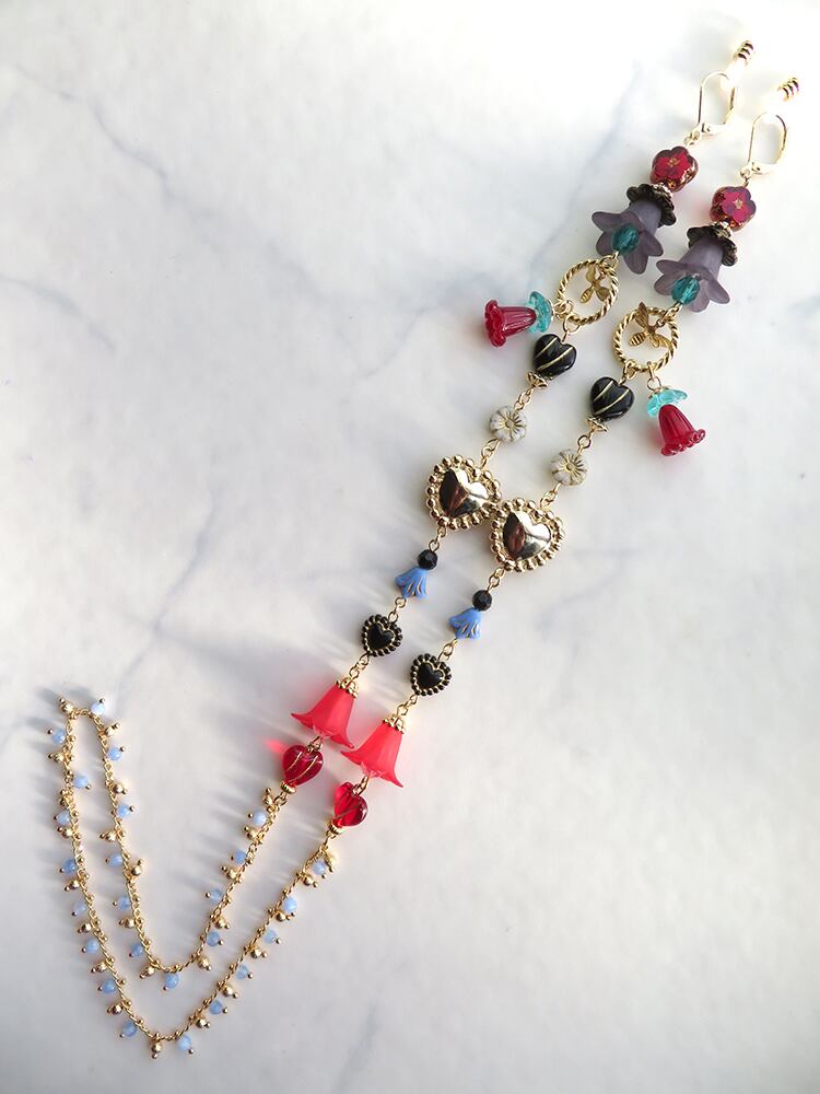 (フレンチフック真下に大きな飾りや玉ビーズが付いているデザインは、フレームに当たったり眼鏡チェーンだと重さを感じるものが多いです)