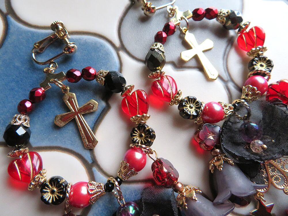 一番下の黒のしましまビーズはインド製ランプワークビーズです。