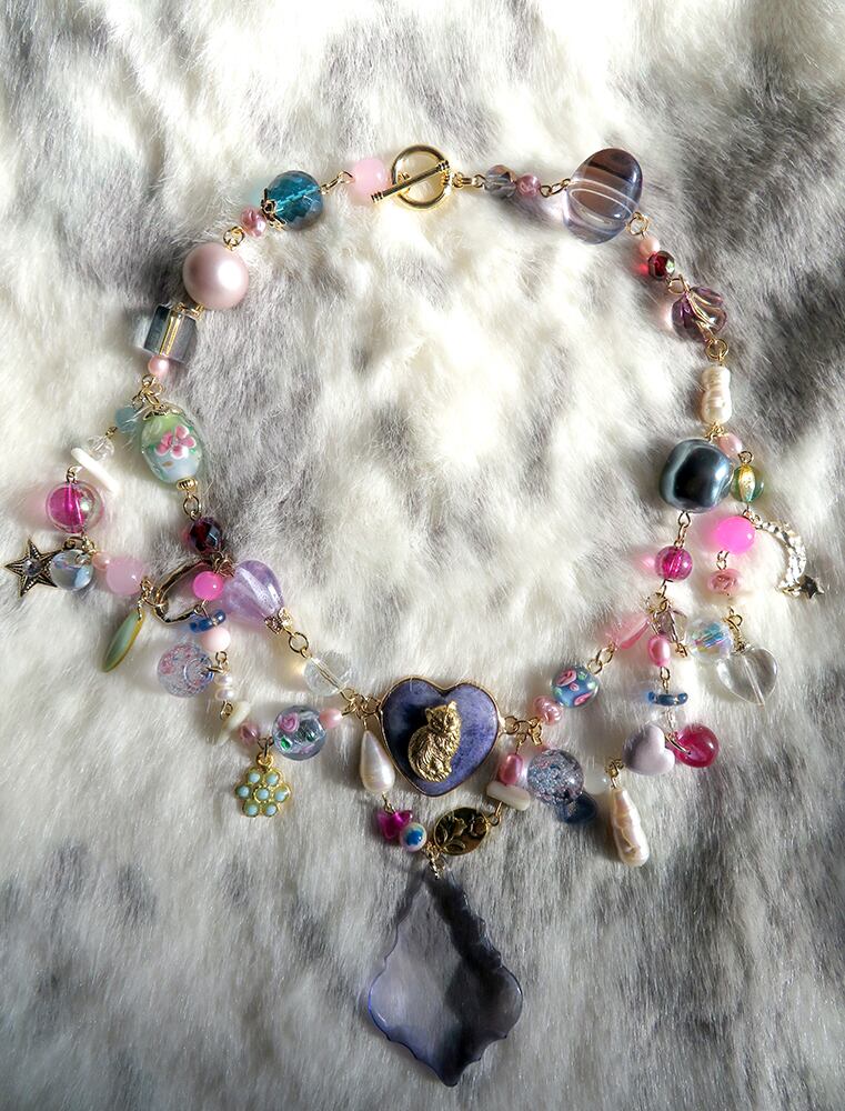 素材:ハンドメイドランプビーズ(アメリカ製、中国製など)淡水パール、アクリルビーズ、イミテーションパール、ガラスビーズ、チェコガラスビーズ、アメリカ製合金チャーム、真鍮、トルコ製チャーム、珊瑚ビーズ、合成石等