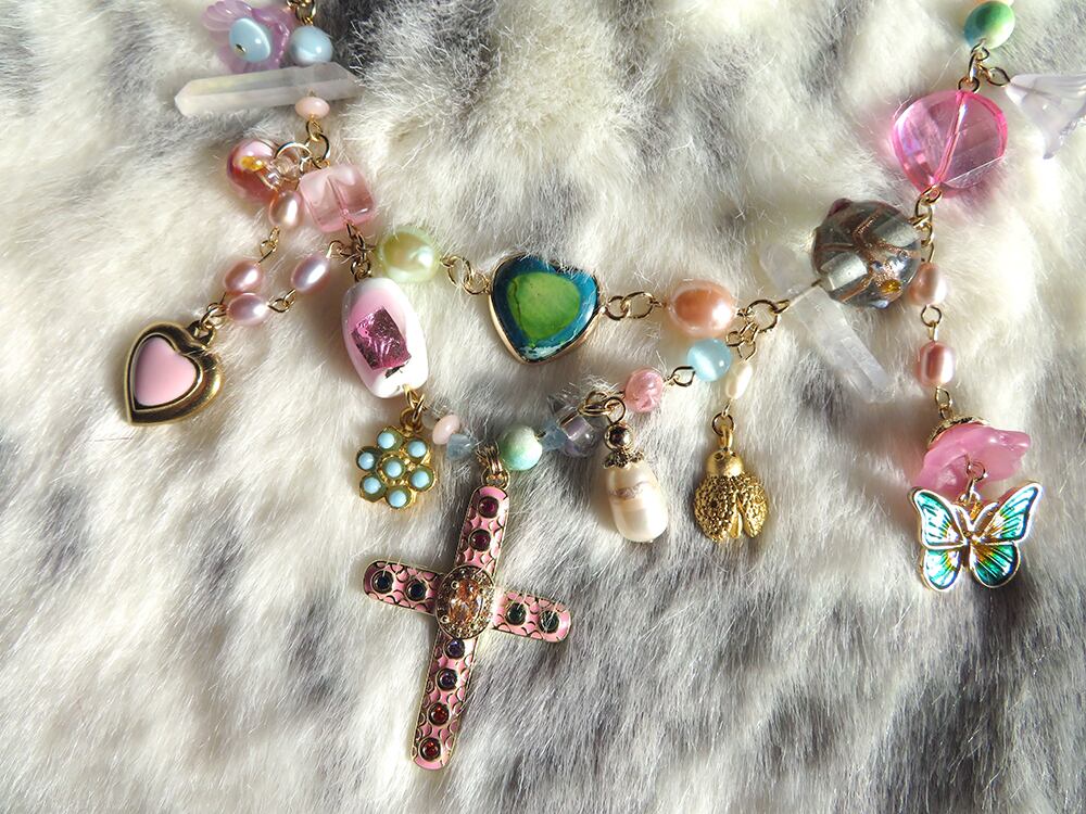 素材:ハンドメイドランプビーズ(アメリカ製)淡水パール、アクリルビーズ、イミテーションパール、ガラスビーズ、チェコガラスビーズ、トルコ製チャーム、真鍮、珊瑚ビーズ、合成石、プラスチック、樹脂、人工水晶、天然石等