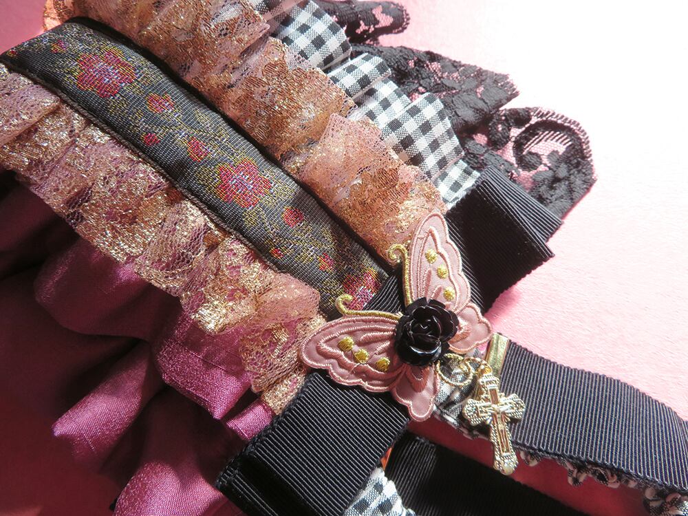 素材には日本製、海外製の生地、刺繍リボン、レースなどを使用しています。