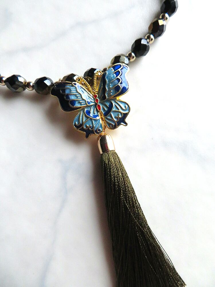 こちらはゴールドベースに黒のチェコビーズを組んだデザイン。