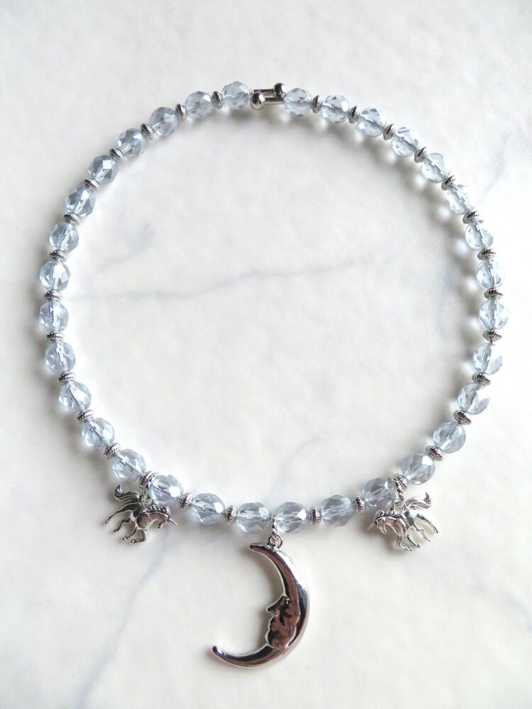 こちらはシルバーベースにアイスブルーのチェコビーズを組んだデザインです。