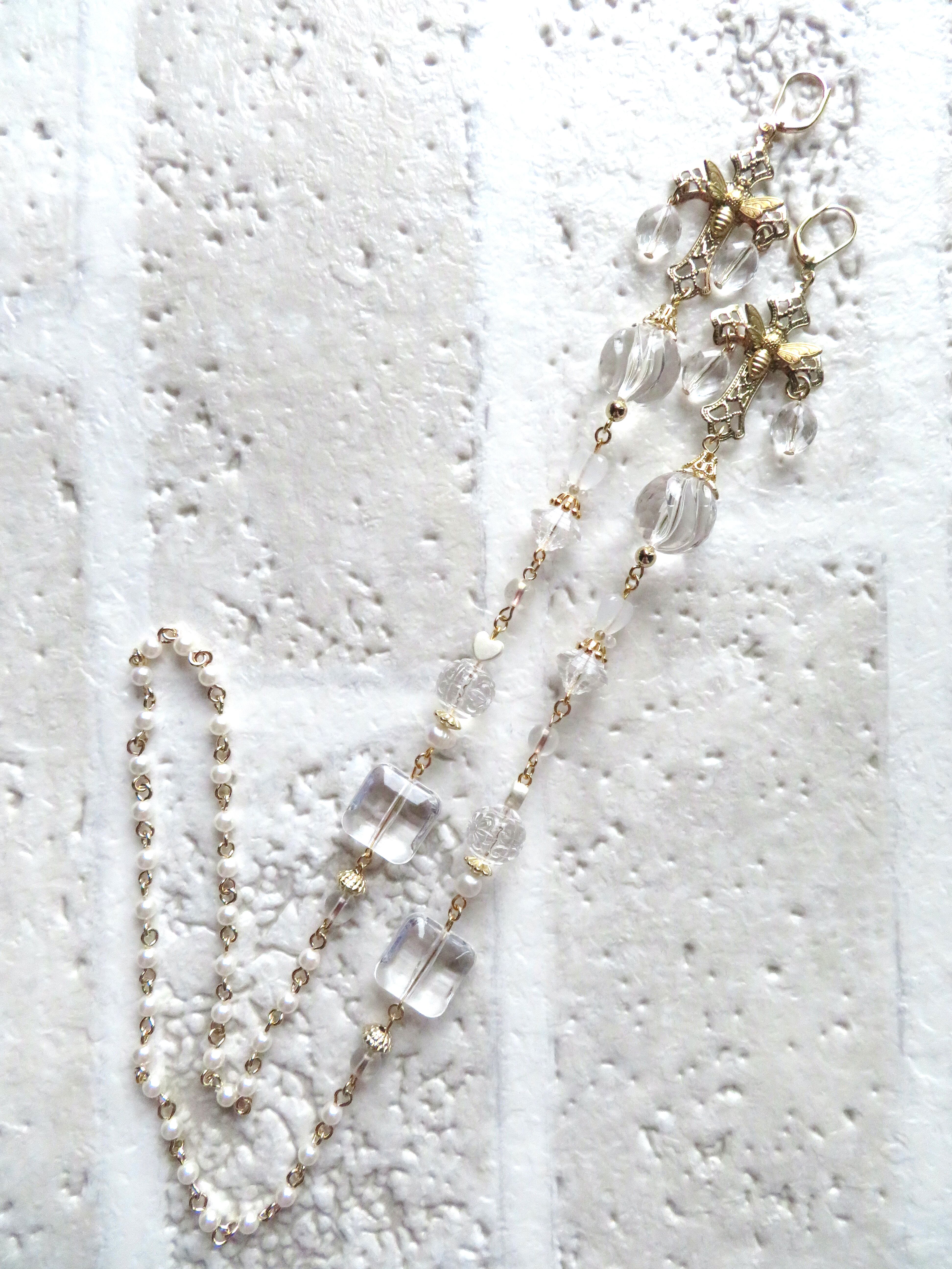 (フレンチフック真下に大きな飾りや玉ビーズが付いているデザインは、フレームに当たったり眼鏡チェーンだと重さを感じるものが多いです)