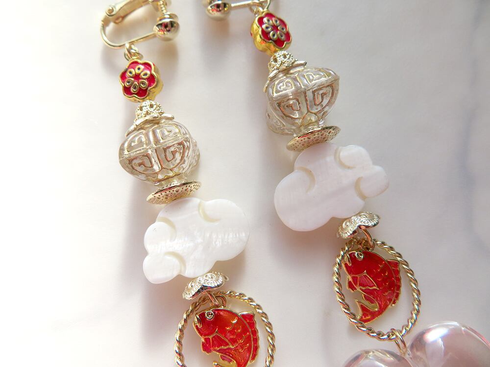お正月コーデにも普段のお洒落にも合わせられる、Japonismやシノワズリなデザインを華やかに、カラフルに制作しました。