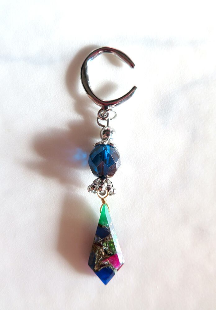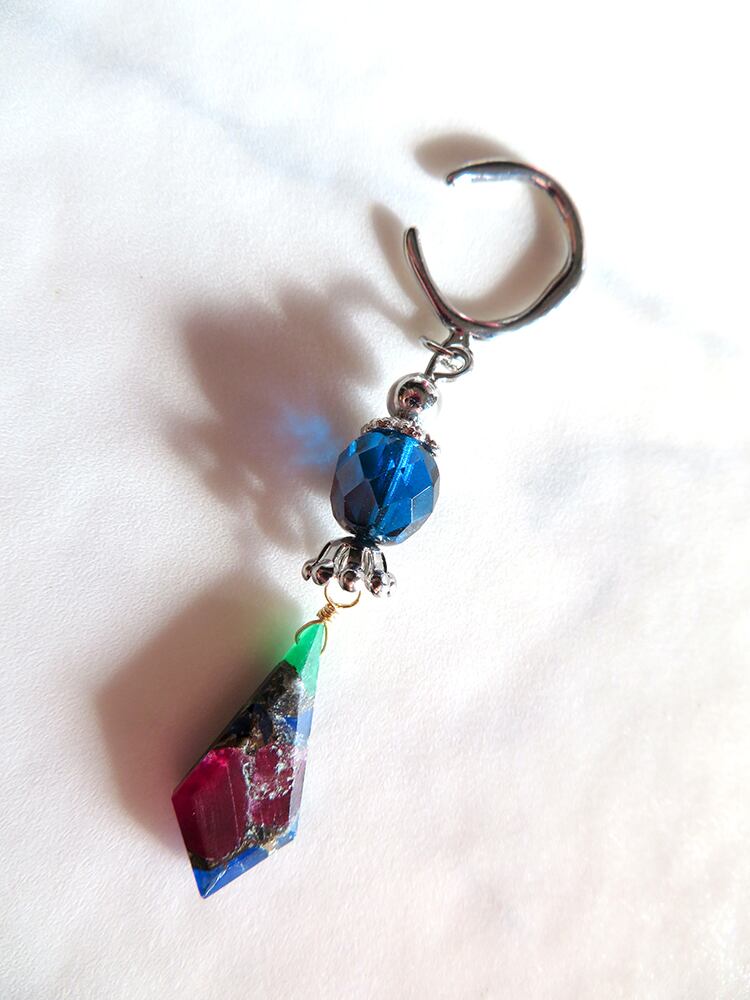 ビーズチャームがついたお守りの様なイヤーカフ。