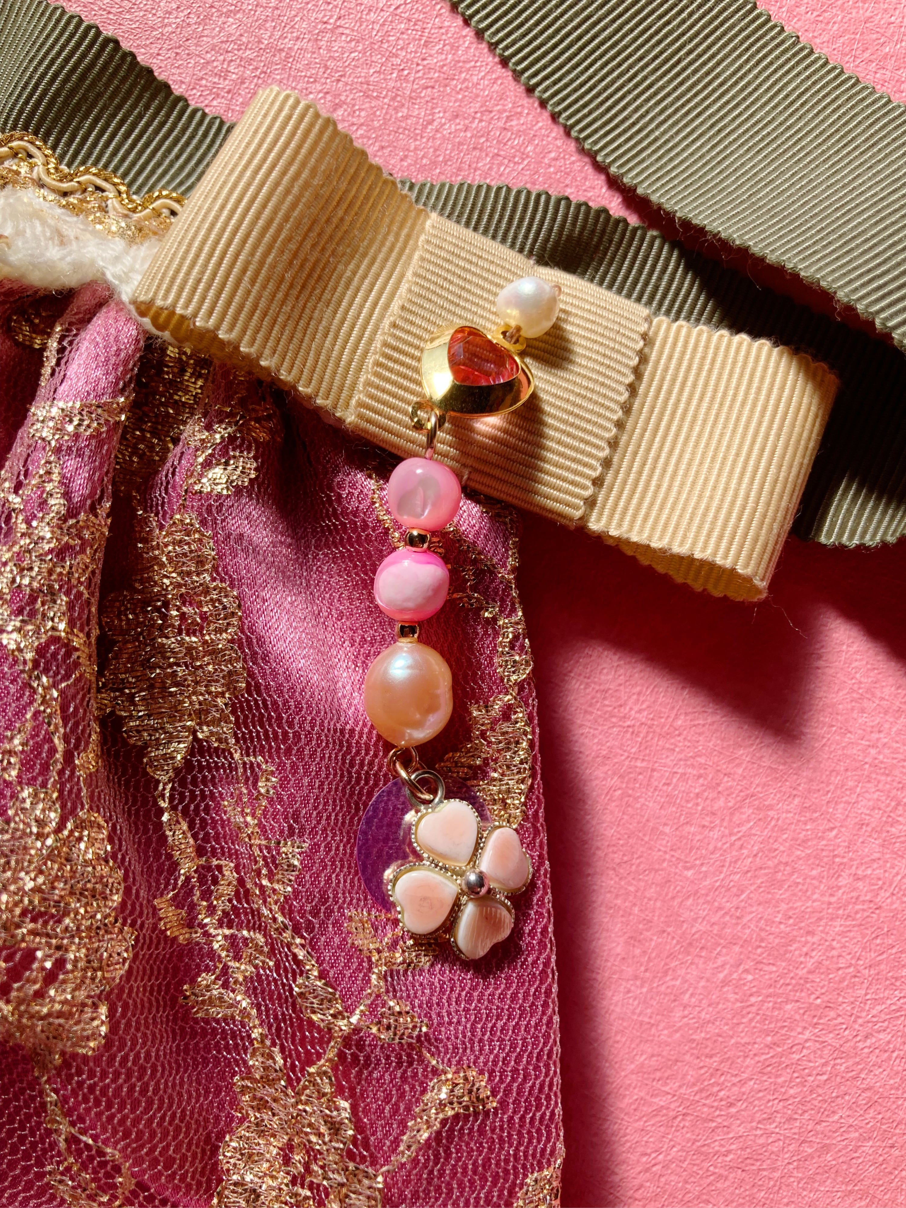チャームは貝ビーズや、レトロなシェルの熱帯魚パーツなど。