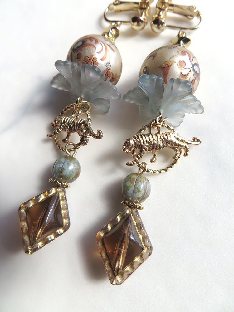 輪くぐりをする虎をイメージしたデザイン。マットな質感の球ビーズが落ち着いた印象をもたらしてくれます。