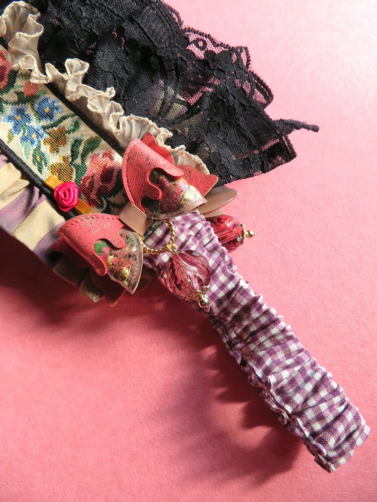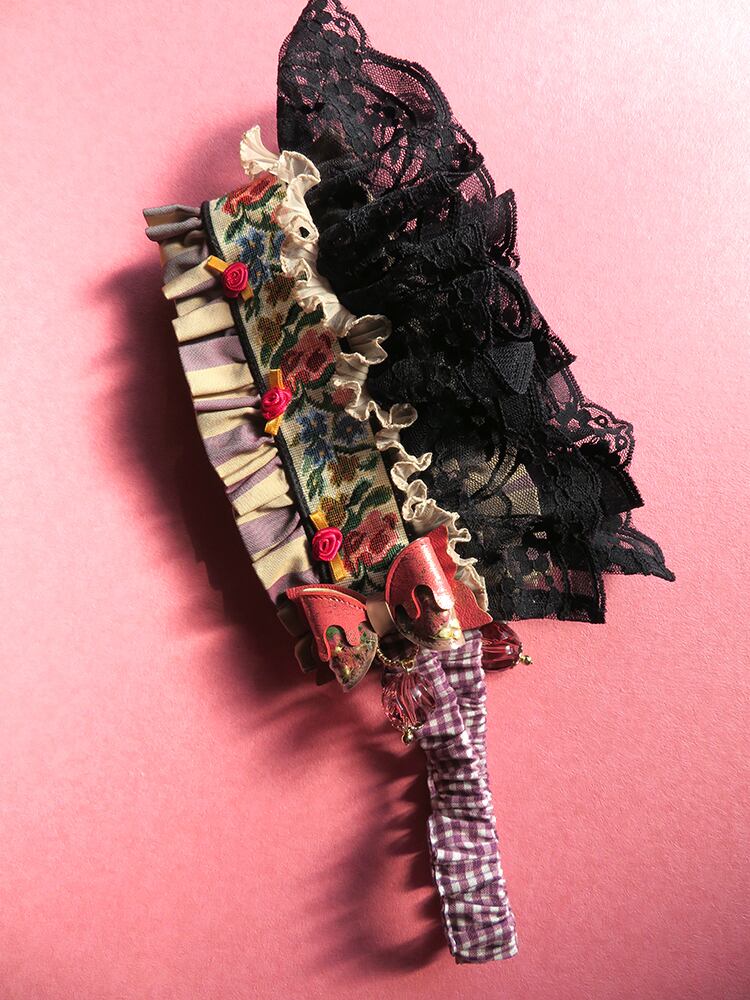 ONISさんの人にも花にも優しい、レジンを使わない本革と押花で制作されたメルトリボンに合わせて、APOLIAがロマンティックなサーカスイメージのヘッドドレスに仕上げました