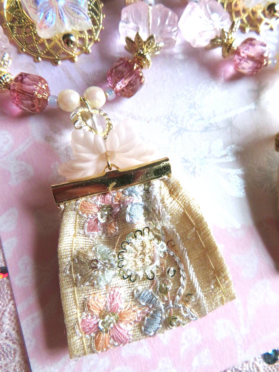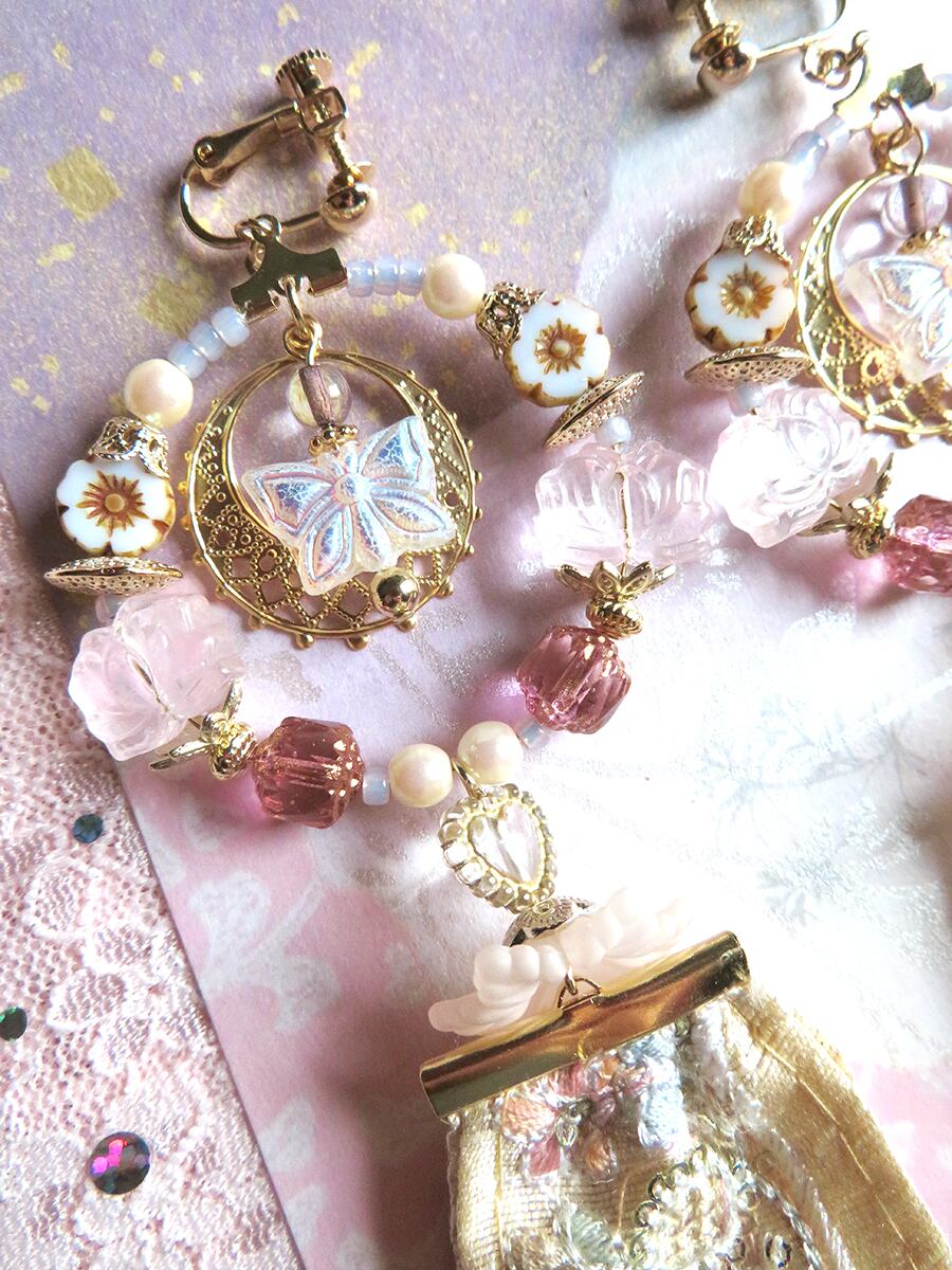 チェコ硝子ビーズ、海外製ビーズ、インド刺繍リボンなどを使用しています。