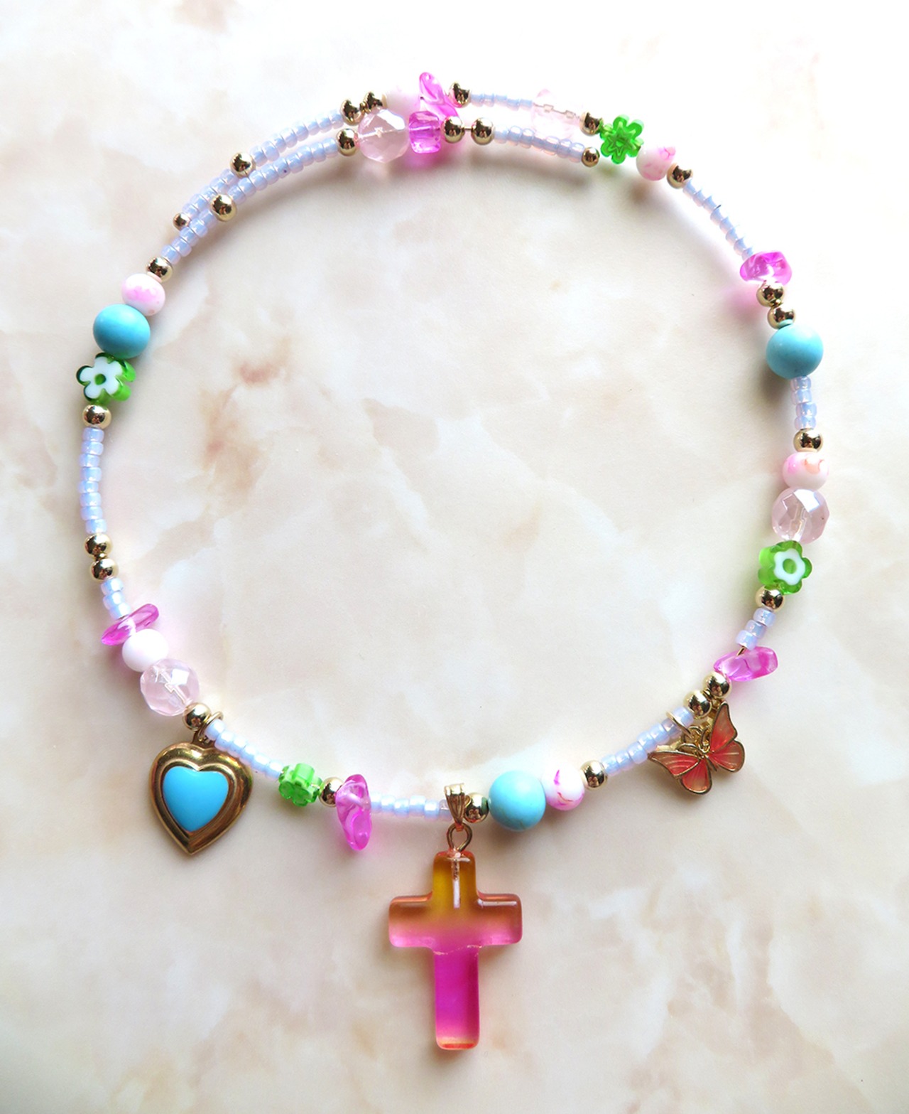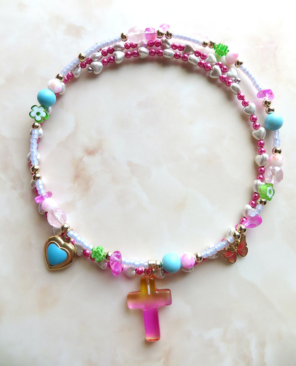 00年代ファッションをイメージした2本セットのビーズワイヤーチョーカー。