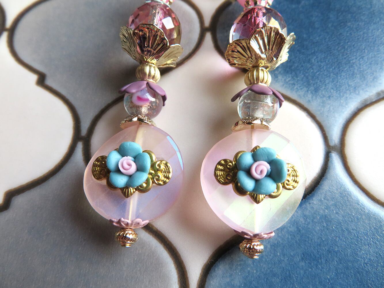 お花のカボションは片面のみについています。