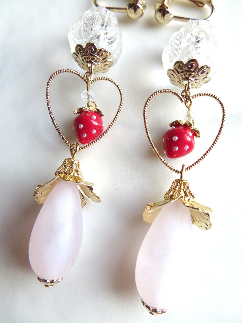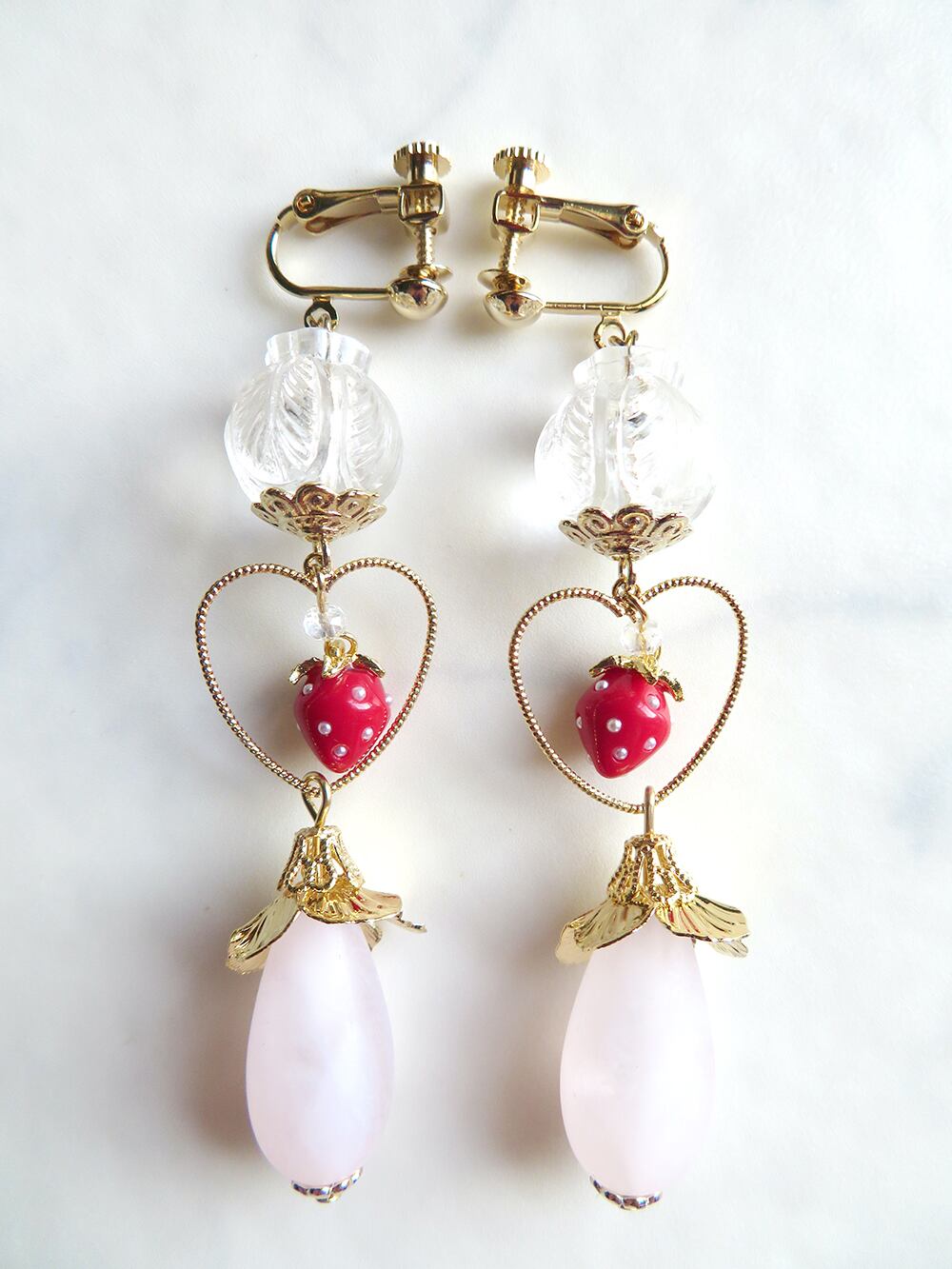 cuteな苺モチーフをシャンデリアの様に華やかな耳飾りに仕上げました。