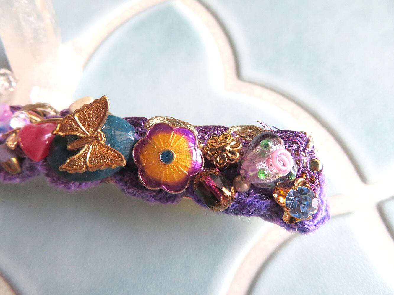 エキゾチックなブレードに長い時を経て海底で眠っていた宝石の様なビーズやチャームを刺繍して、ヘアクリップに仕上げました。髪に挟むだけで華やかな雰囲気を演出してくれるデザインです。