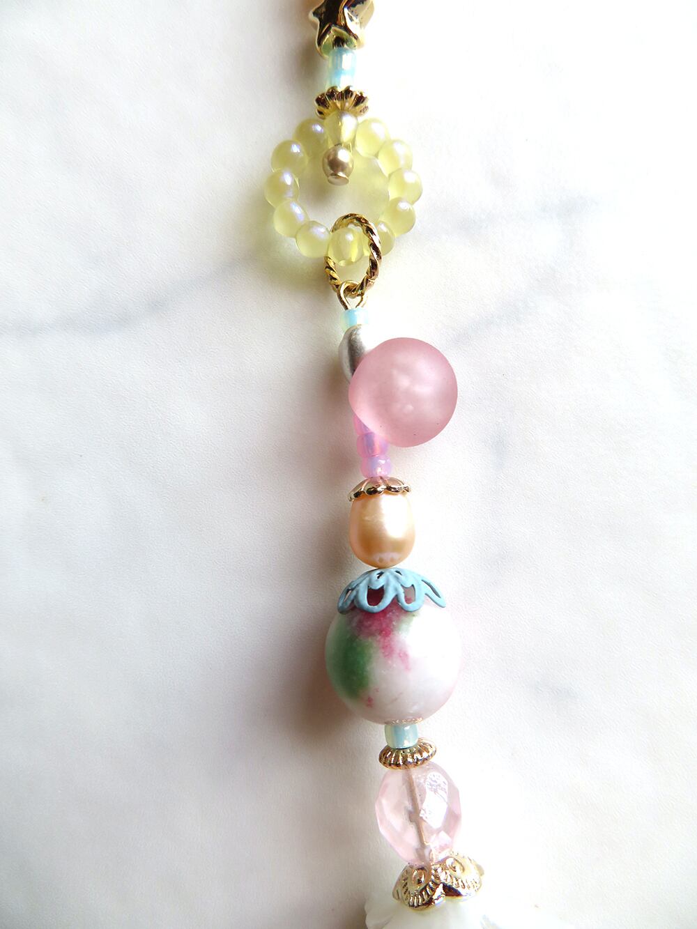 小さめの繊細なビーズや金具を使用しているため、引っかかりや急激な圧力、激しい動きなどで破損する可能性がありますのでご注意ください