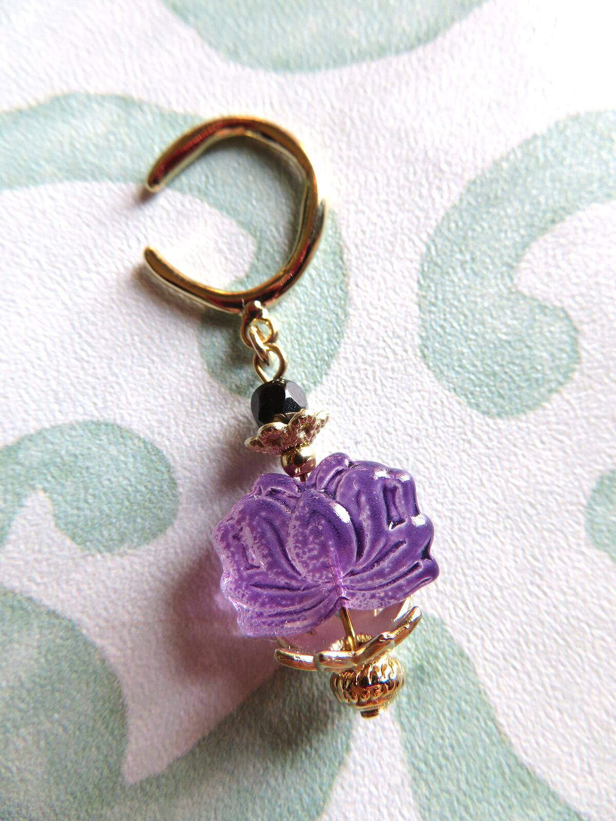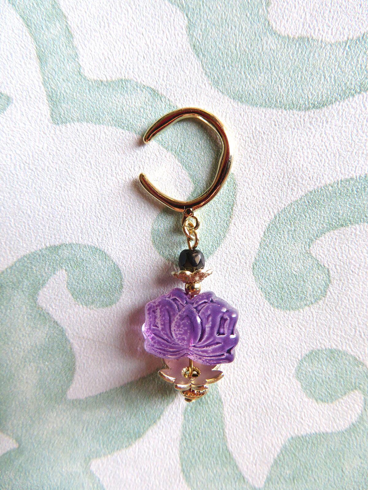 ビーズチャームがついたお守りの様なイヤーカフ。