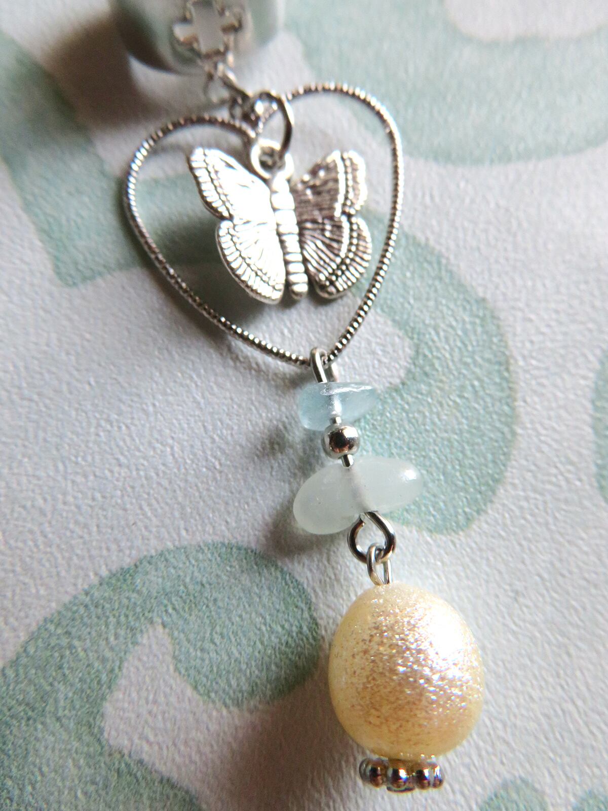 ビーズチャームがついたお守りの様なイヤーカフ。