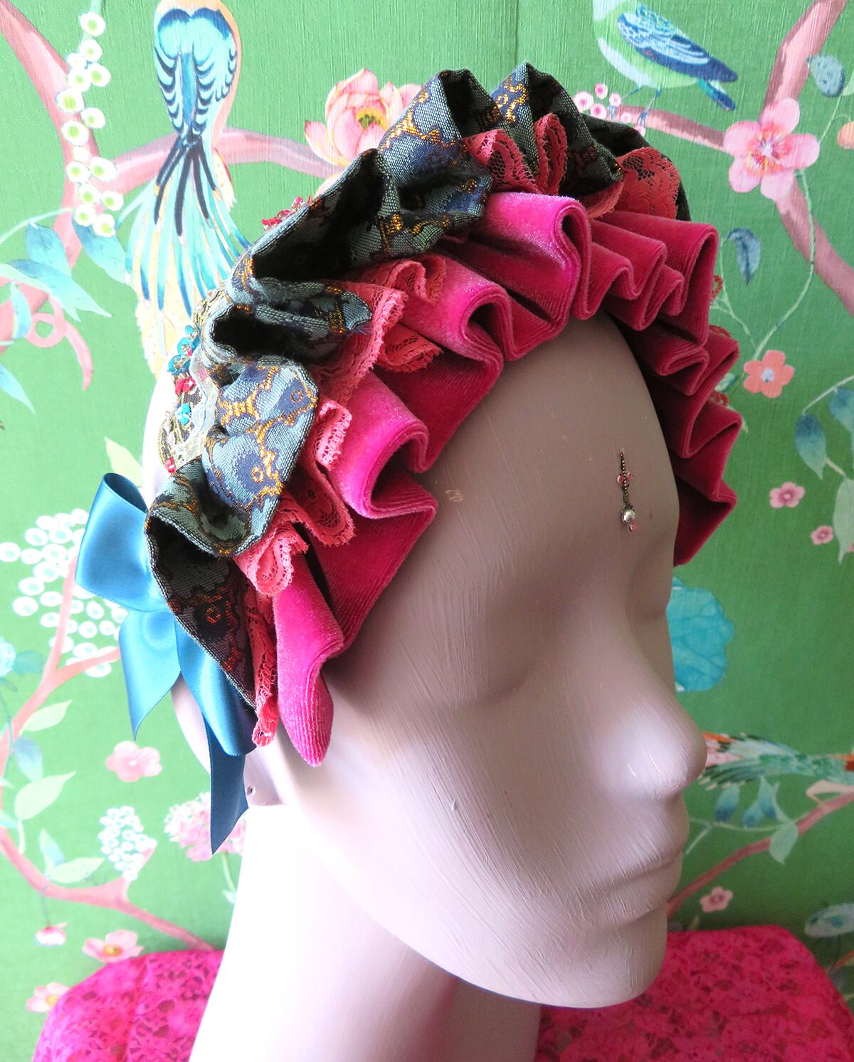 サイドから見るとミニマムなシルエットですが、フロントから見るとまるでヘッドドレスを着けているようなボリューム感とあるデザイン。