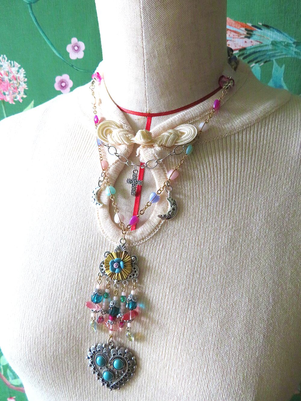 シルバーベースにゴールドをプラスしたトライバル風ネックレス。