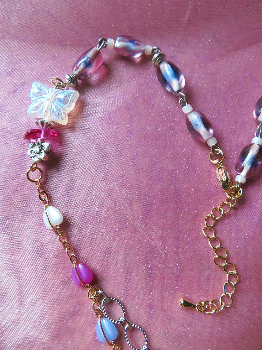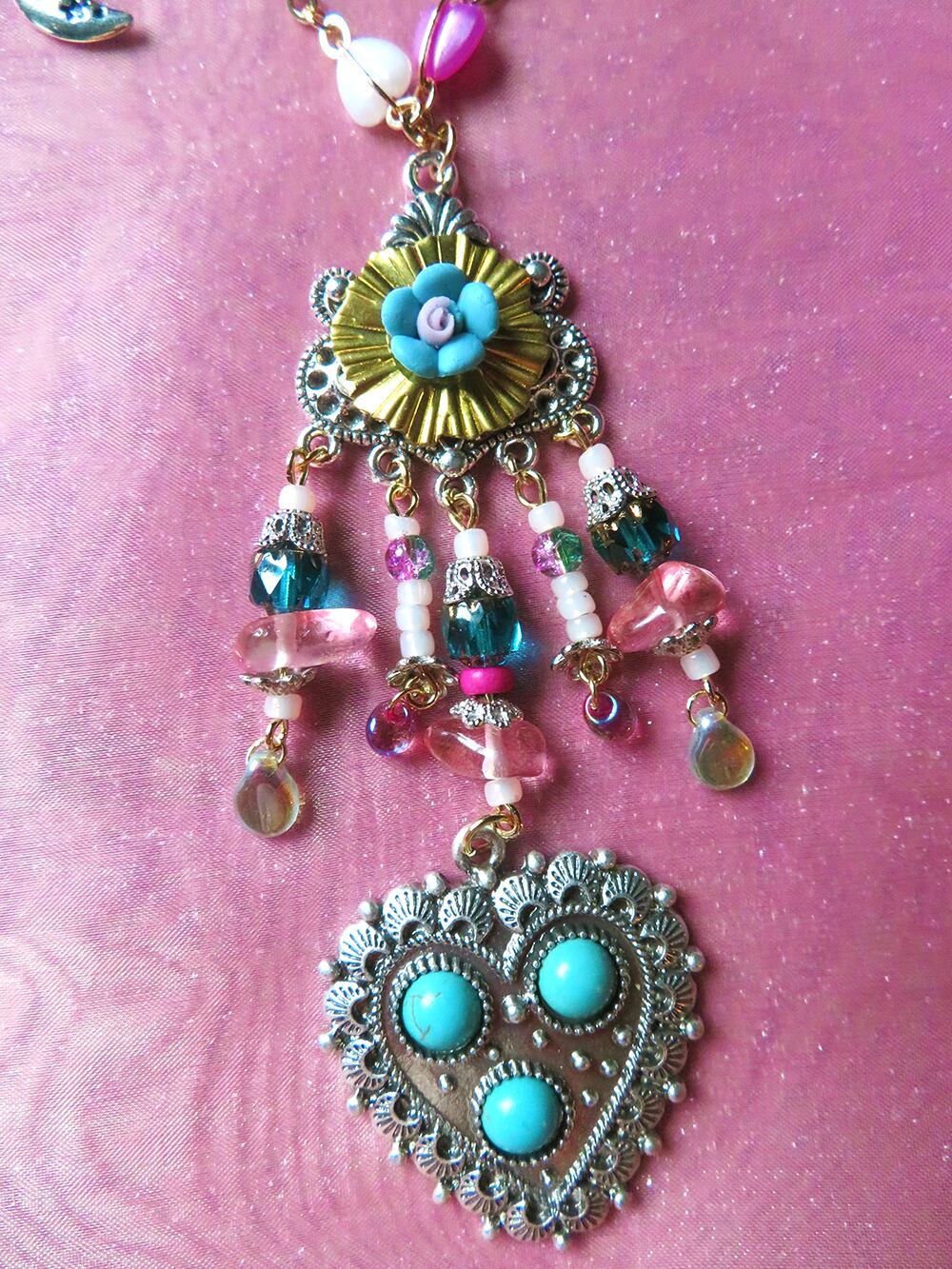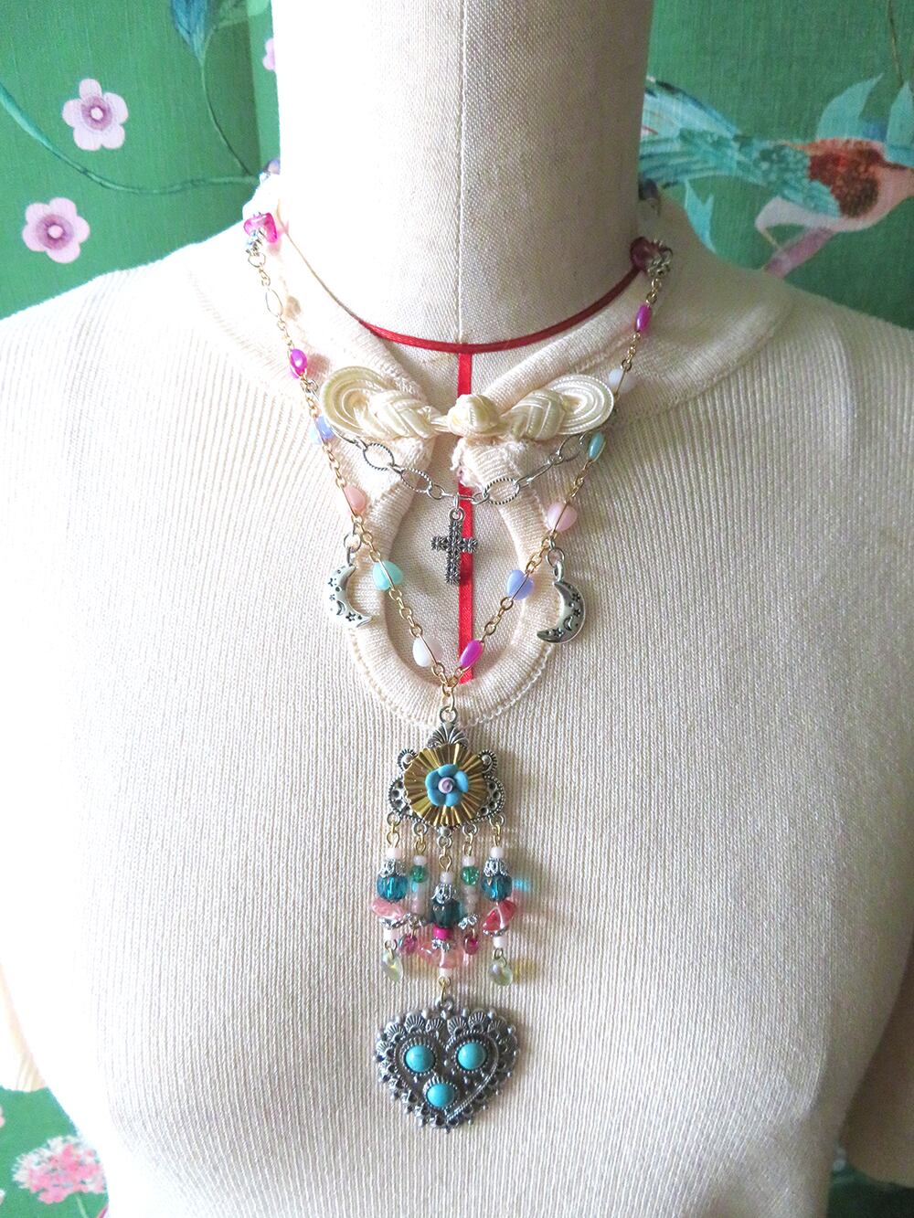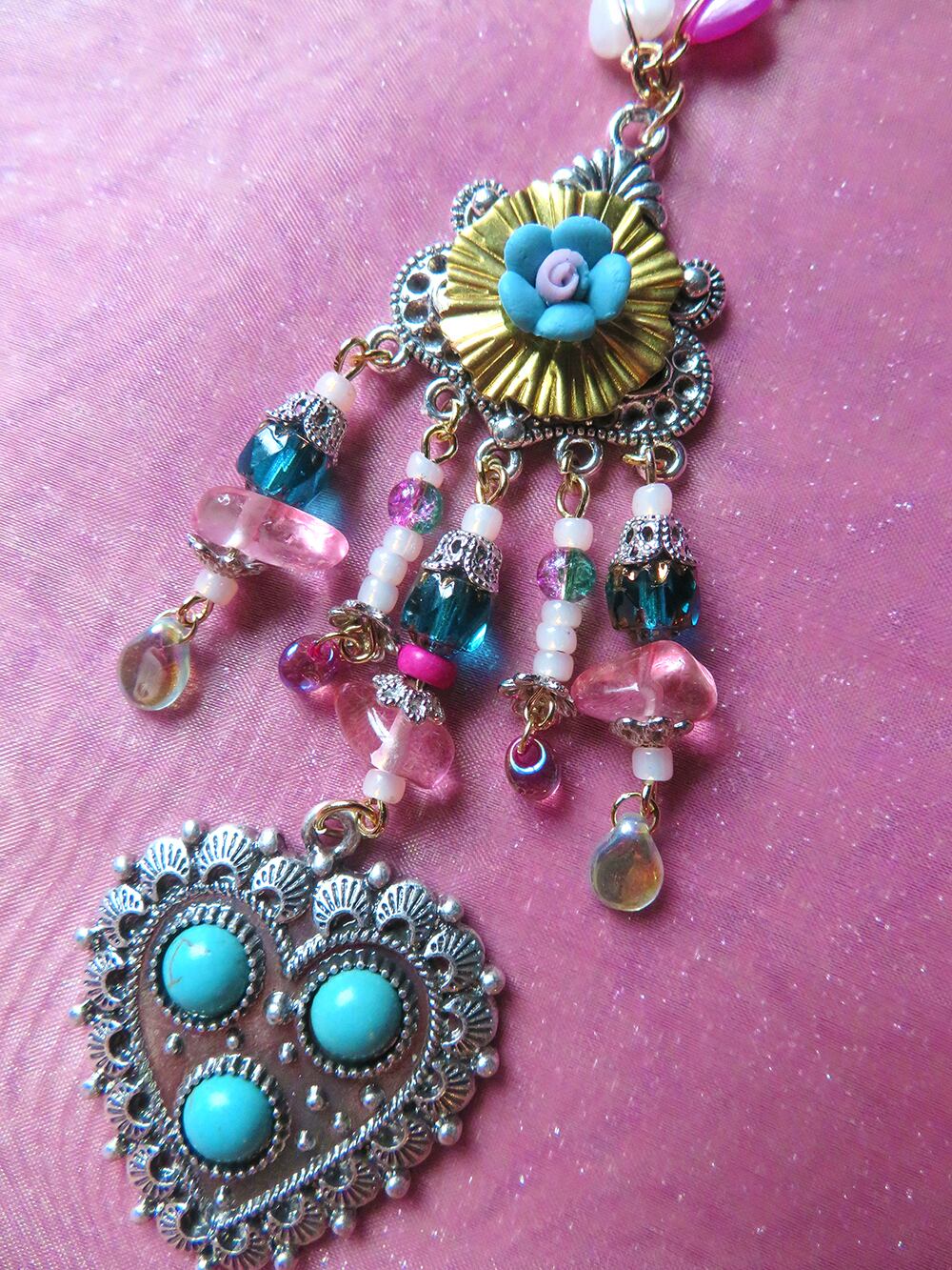 チェコ硝子ビーズや染め細石などを組み合わせて、民族調ですが可愛さとストリート感をプラスしました。