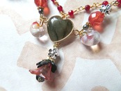 アメリカ製のハンドメイド吹きガラスビーズや染め細石、チェコ硝子ビーズなどを使用しています。