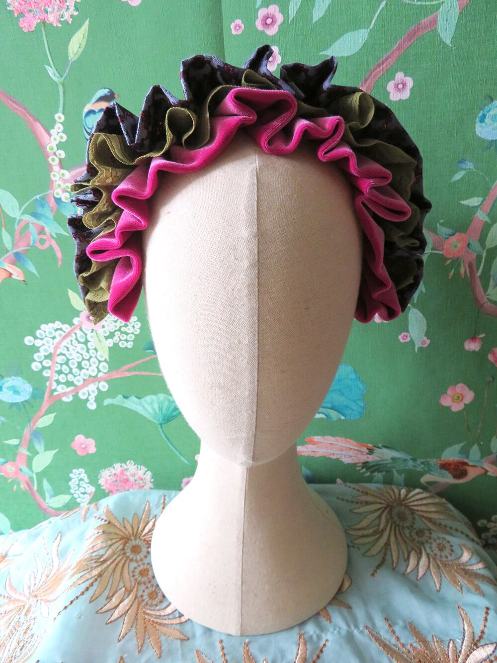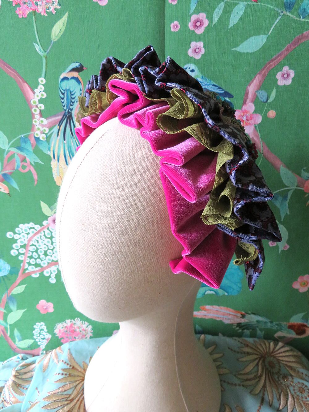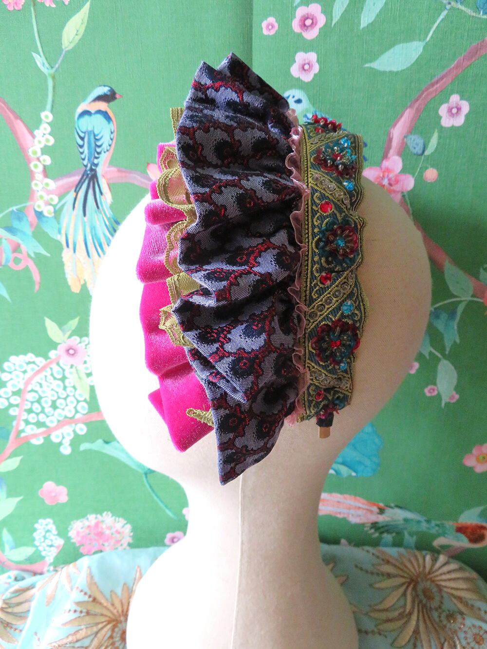 サイドとフロントでシルエットと配色のイメージが異なる印象を受ける、不思議なカチューシャです。